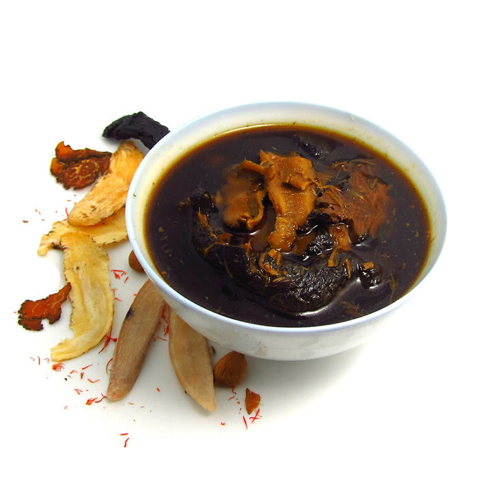 首先第一碗汤,是用当归、川芎、白芍和熟地黄组成,当归是补血又活血,川芎活血行气的效果非常好,白芍能够养血,而熟地黄可以滋阴补血。这4味药组成的四物汤,是养血补血的经典方剂,对于气血不足早期,头晕眼花、失眠心悸、手脚冰凉等症状,有很好的调理效果。